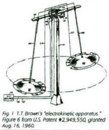 Thomas Townsend Brown, (1905-1985) an American physicist, was a leader in developing theories concerning the link between electromagnetic and gravitational fields theorized by Dr. Albert Einstein. He advanced from theory to application with the development of solid and disc-shaped apparatuses which are believed to have created and utilized temporary, localized gravitational fields.