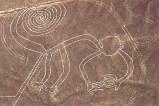 I think they were drawn to show other visitors to our planet some of the creatures that live on our planet. That seems like the logical purpose for these drawings. Remember some of these drawings are so large that they cover over 1 mile. Another amazing feature of these lines is that many of them are drawn with only 1 line that doesn't end, it is a continous line. These landscape artists surely had some anti gravity crafts to see these pictures from above. Here is another drawing of a person, which may or may not be made in the image of a human. Notice his big eyes.