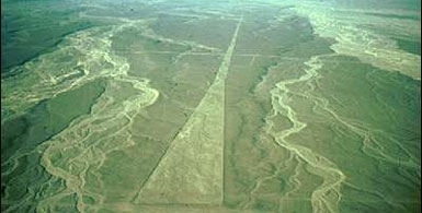 Notice this picture of pyramids and other geometrical drawings. There are hundreds of these lines and geometrical shapes drawn onto several square miles in Nazca. Were some of these lines actual runways for flying crafts. At this point no one is completely sure. Here is another picture which features lines that are completely straight and span for hundreds of feet. How in the world would ancient peoples be able to draw completely straight lines that span kilometres, no researchers can properly explain how they did this. The must have had technology which enabled them to do this.